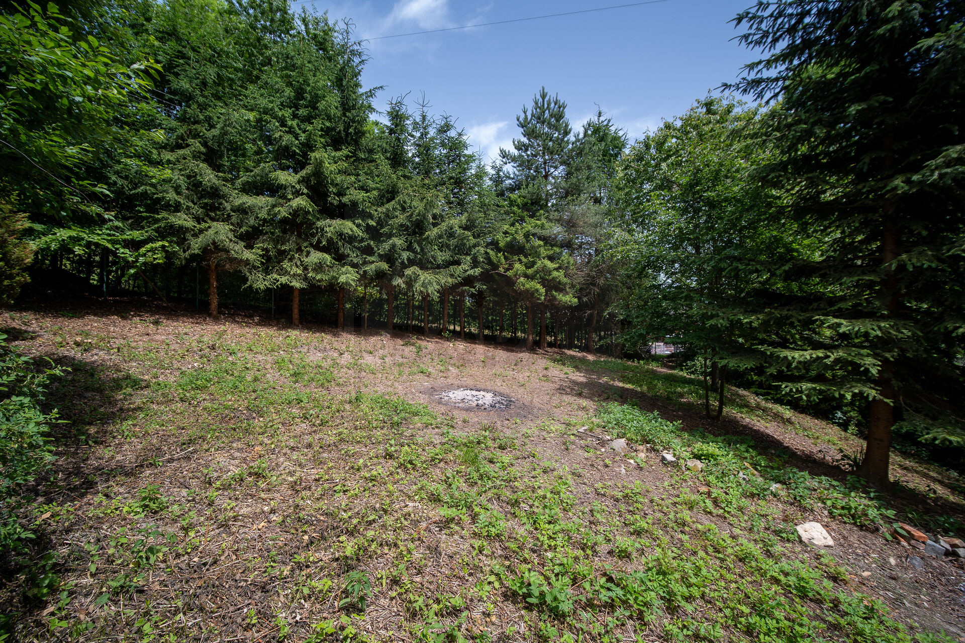 Pozemek je obklopen vzrostlou zelení, která zajišťuje příjemné odstínění od příjezdové cesty. Zároveň je zde výborný přístup a možnost parkování pro několik vozů.